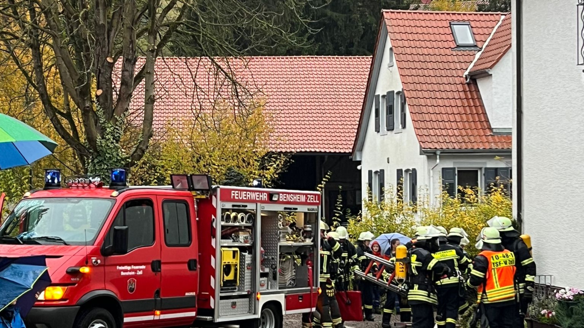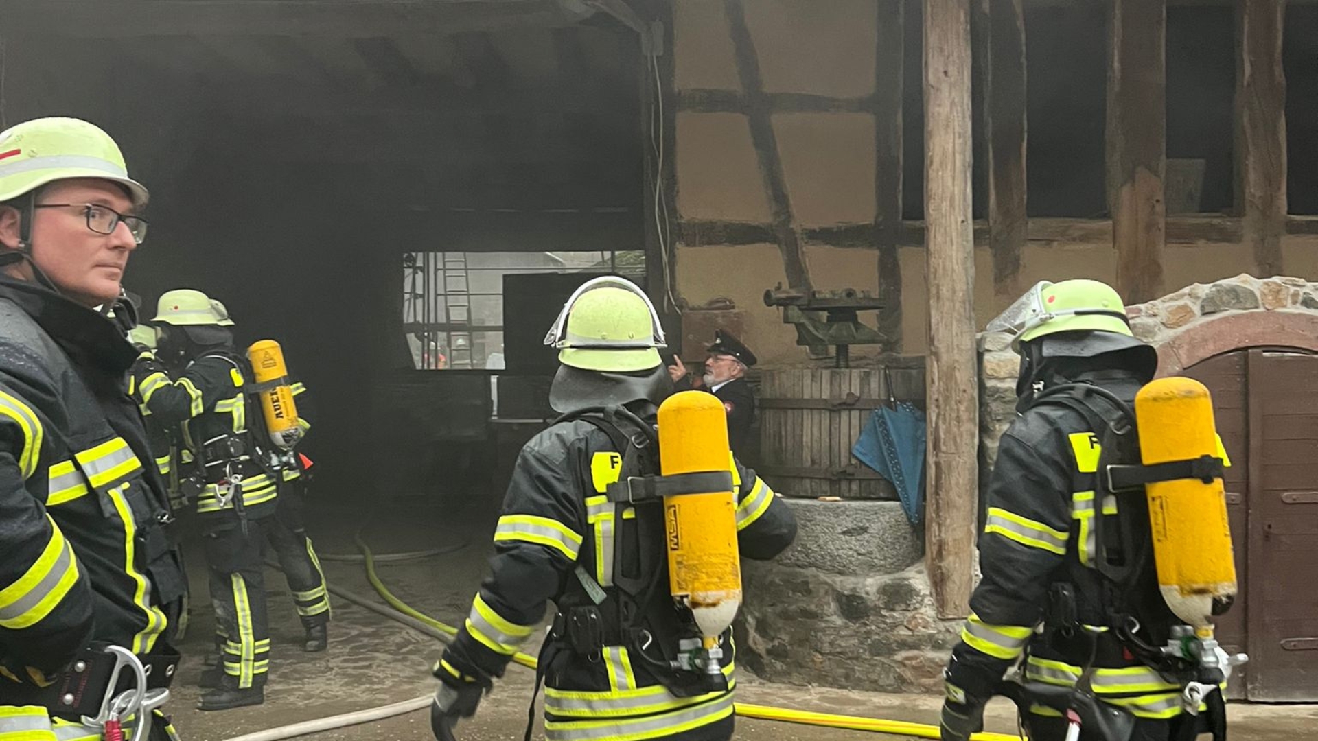 Schnell wurde die Wasserversorgung aus dem Hydrantennetz sichergestellt und die Angriffstrupps konnten zur Menschenrettung in das Gebäude vorrücken. 4 Personen konnten aus dem „brennenden“ Gebäude gerettet werden, während die übrigen 2 Personen über Leitern aus dem Haus gerettet wurden.