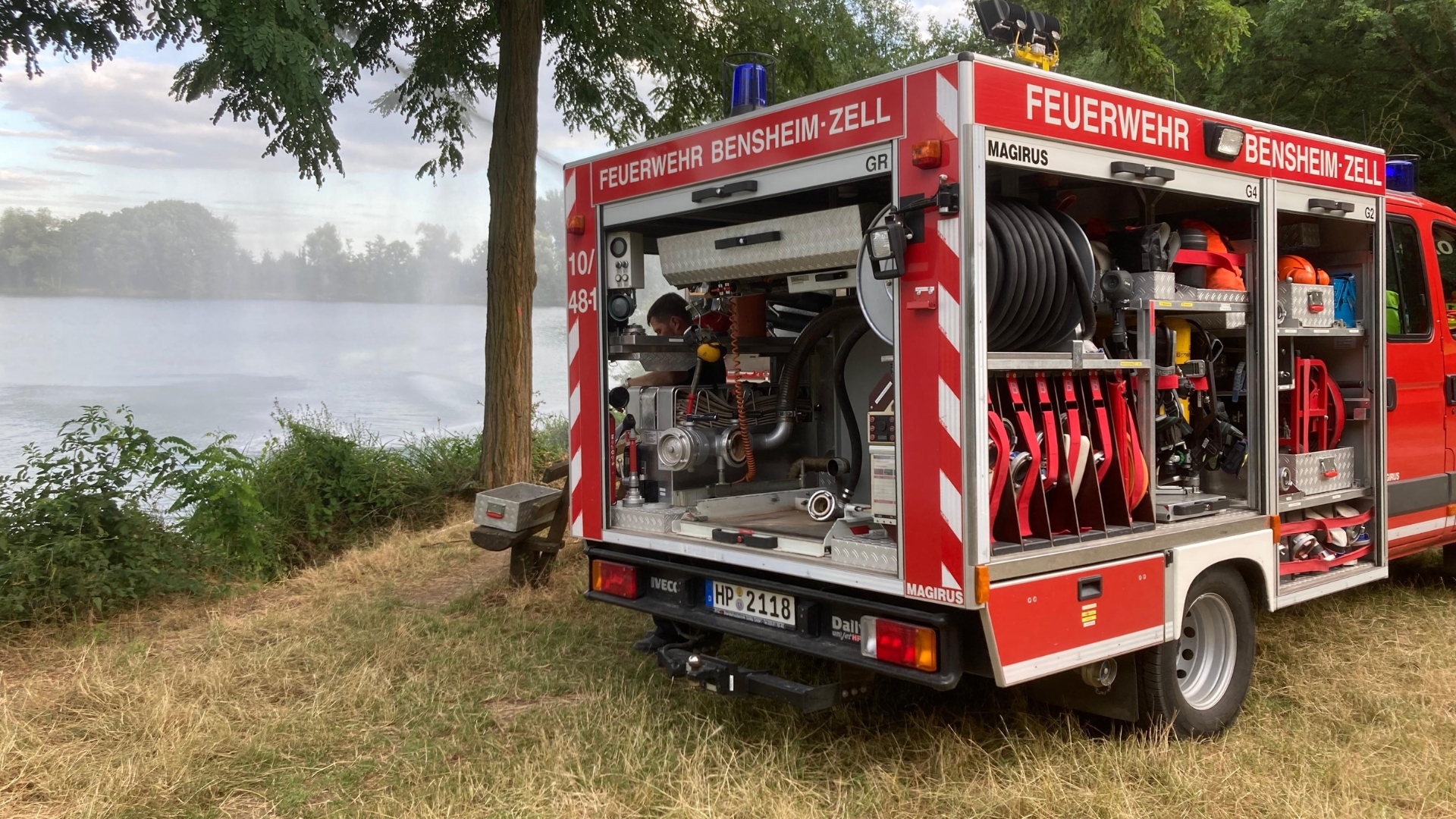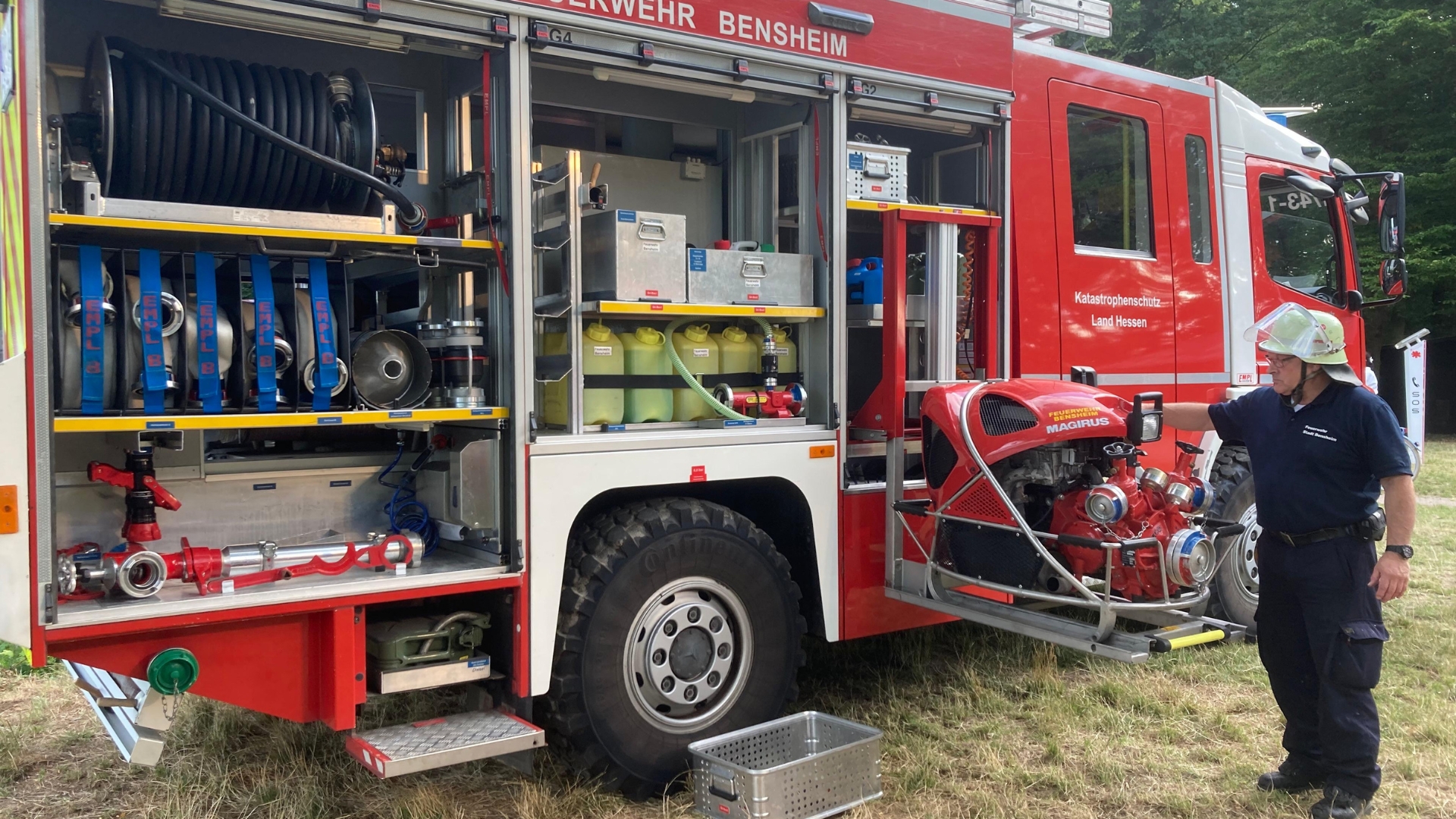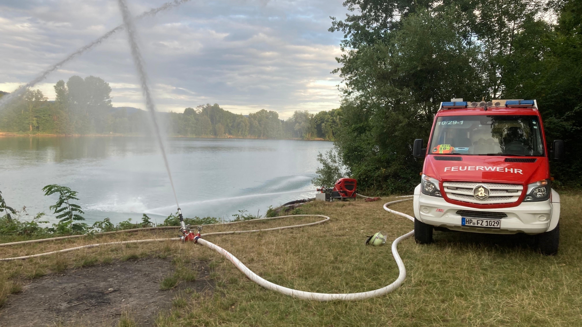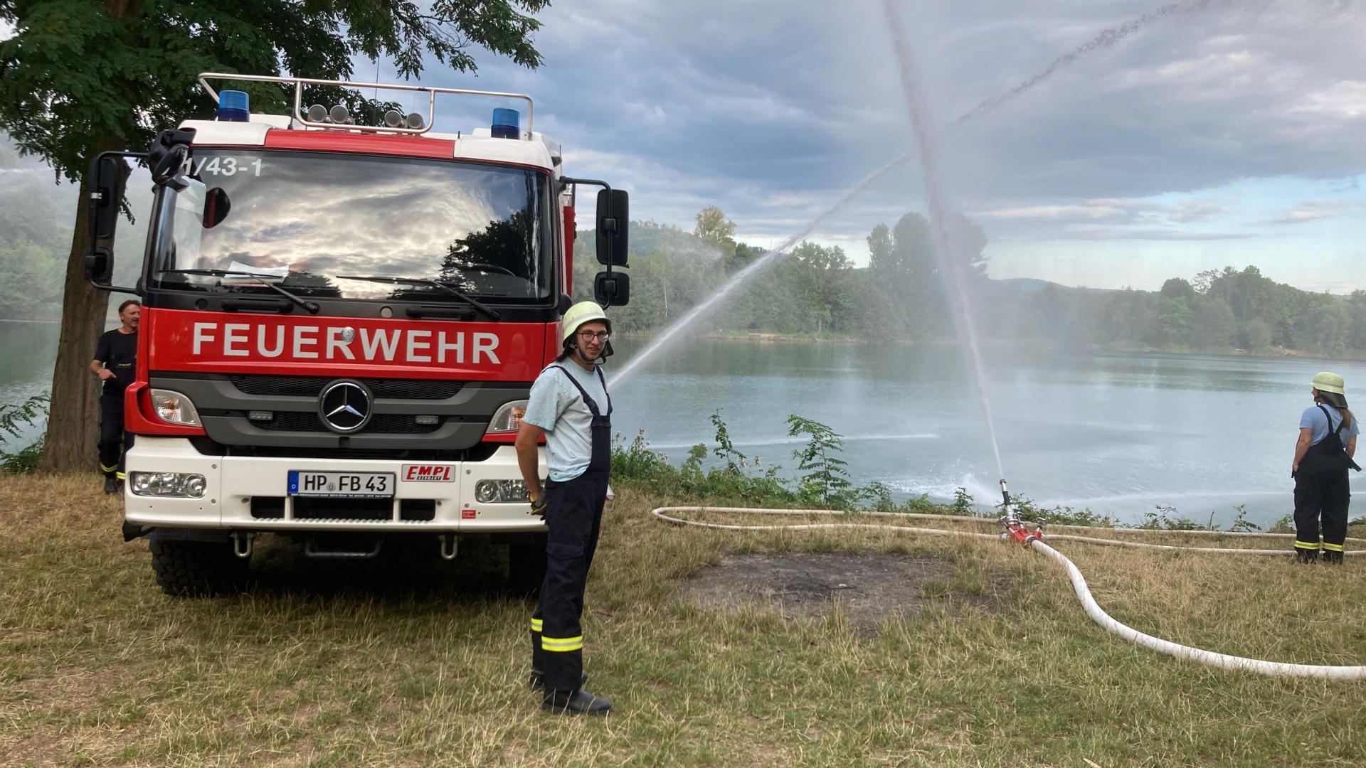 Unterstützt durch ein zusätzliches Löschfahrzeug der Feuerwehr Bensheim fuhren wir gemeinsam zum Niederwaldsee und richteten mehrere Wasserentnahmestellen ein. Bei dieser Übung konnten wir darüberhinaus auch gleich „testen“, wie die unterschiedlichen Feuerlöschkreiselpumpen bedient werden, wie das Ansaugen funktioniert und mit welchem Druck das Wasser abgegeben werden kann.