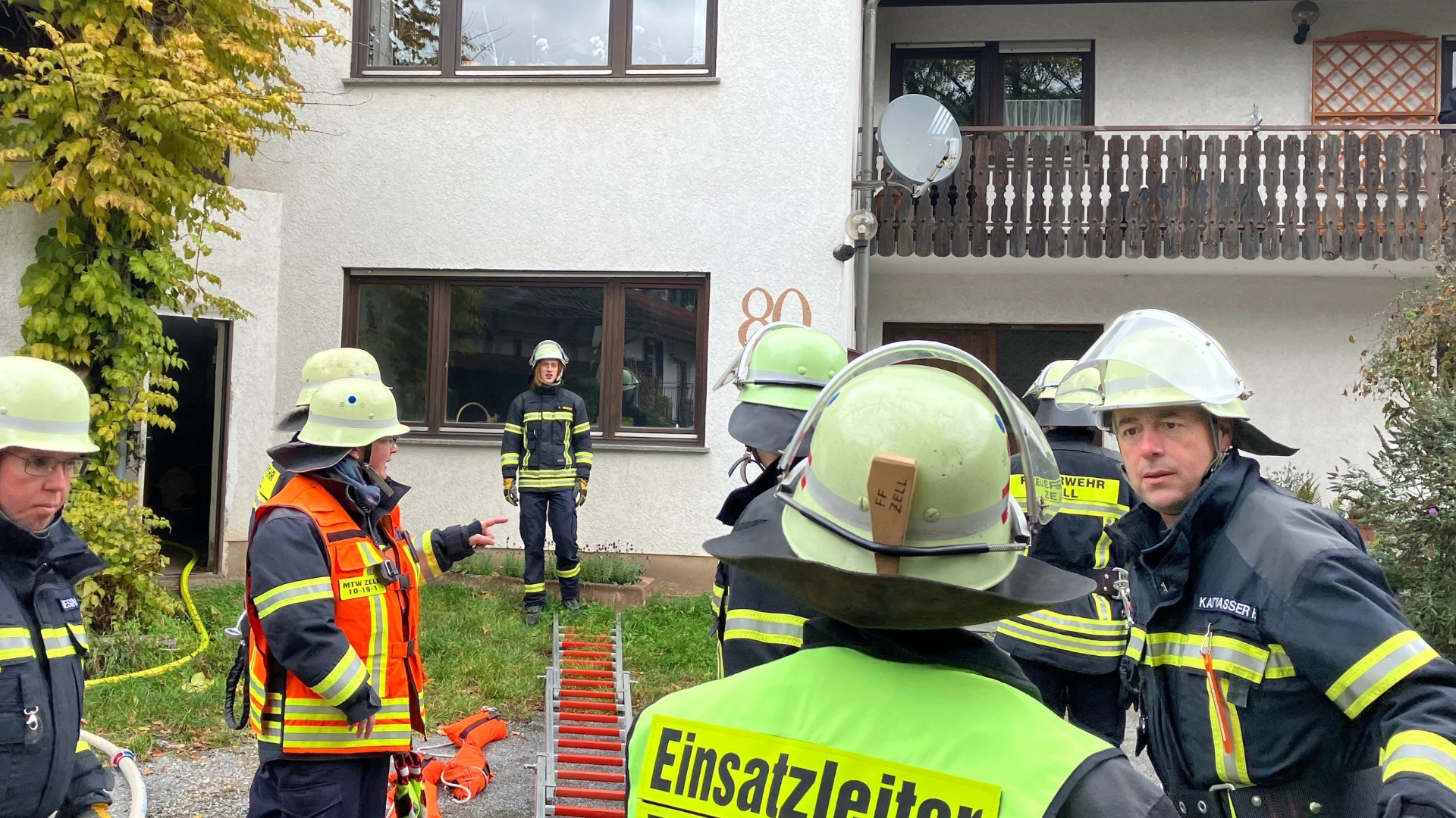 Gleichzeitig wurde mit der Rettung einer Person mittels Leiter über den Balkon des Wohnhauses begonnen.